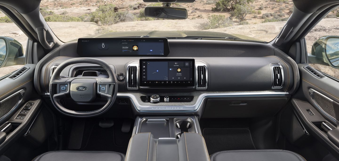 The 2026 Expedition lineup equips both standard and MAX models with the same advanced technology. The 24-inch panoramic display dominates the dashboard, paired with a 13.2-inch centre touchscreen running Ford Digital Experience. This system integrates Google Play Store apps, wireless Apple CarPlay and Android Auto, and 5G Wi-Fi hotspot capability for up to 10 devices.